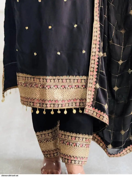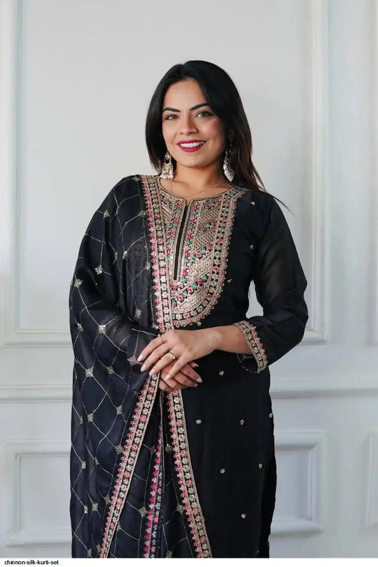 Elegant Black Embroidered Traditional Outfit